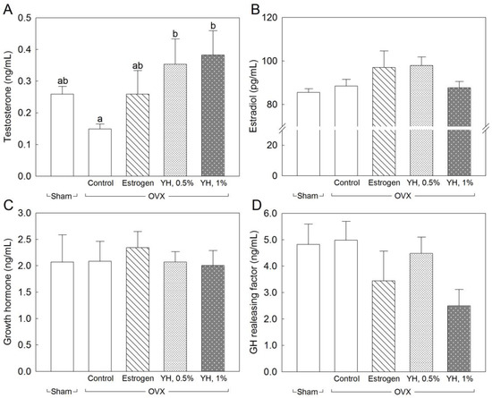 - Kim, J.M.; Kim, S.Y.; Jung, E.Y.; Bae, S.H.; Suh, H.J. Yeast hydrolysate induces longitudinal bone growth and growth hormone release in rats. Phytother. Res. 2009, 23, 731–736. [Google Scholar] [CrossRef]
