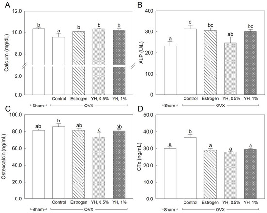 - Arjmandi, B.H.; Alekel, L.; Hollis, B.W.; Amin, D.; Stacewicz-Sapuntzakis, M.; Guo, P.; Kukreja, S.C. Dietary soybean protein prevents bone loss in an ovariectomized rat model of osteoporosis. J. Nutr. 1996, 126, 161–167. [Google Scholar] [CrossRef]