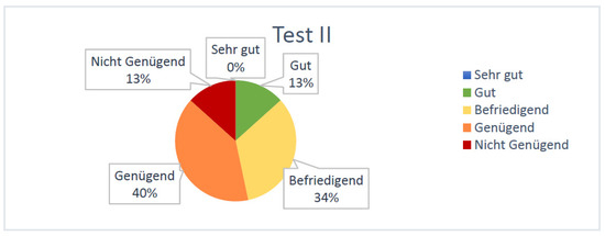 At the second test (taken after the simulation training) students achieved an average of 44.1 points (±6.1) out of 64 and thus showed an average improvement of 88%. According to the equivalence key for grades, only 13% of the students were assessed with “Nicht genügend”/“F” after the second exam (Figure 3). The same percentage of participants was graded with a “Gut”/“B” after the final test, over 1/3 received a “Befriedigend”/“C” and 40% improved to a “Genügend”/“D”.