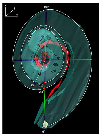 | Kawano et al. [7] | 8 | 3D reconstruction from H&E 3 µm light microscopy | 1.75 to 2 turns (630°–720°) | 14.73–18.38 mm (X = 15.98 mm) | 945°–1080° 37.9–43.8 mm | 41–49.8% length | ||