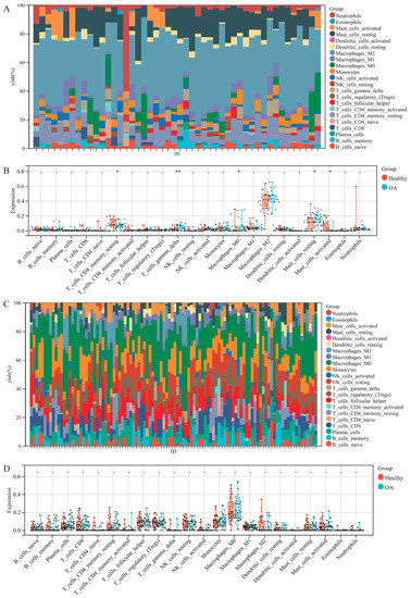 - Han, Y.; Wu, J.; Gong, Z.; Zhou, Y.; Li, H.; Wang, B.; Qian, Q. Identification and development of a novel 5-gene diagnostic model based on immune infiltration analysis of osteoarthritis. J. Transl. Med. 2021, 19, 522. [Google Scholar] [CrossRef]