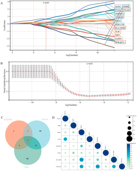 2.8. Characteristic Gene Screening by LASSO-Cox Regression Analysis