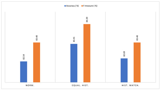 In addition to selecting the best algorithm, it was necessary to select the best image enhancement technique. This was the histogram equalization that, together with Random Forest, is the one that obtains the best classification result. This technique is followed by histogram matching and finally normalization with quite similar results.