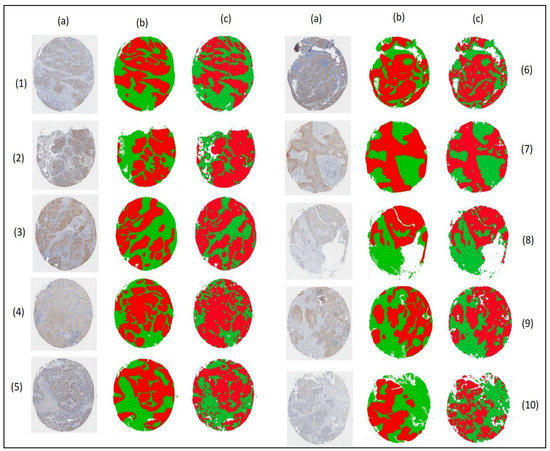 The jSLIC method was applied on the set of initial TMA images using the parameters, and the result can be seen in Figure 5a,b.