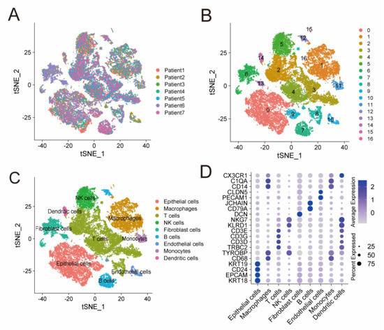 - Hao, Y.; Hao, S.; Andersen-Nissen, E.; Mauck, W.M.; Zheng, S.; Butler, A.; Lee, M.J.; Wilk, A.J.; Darby, C.; Zager, M.; et al. Integrated Analysis of Multimodal Single-Cell Data. Cell 2021, 184, 3573–3587.e29. [Google Scholar] [CrossRef] [PubMed]