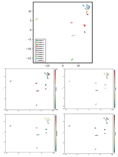 - Allaoui, M.; Kherfi, M.L.; Cheriet, A. Considerably Improving Clustering Algorithms Using UMAP Dimensionality Reduction Technique: A Comparative Study. In Lecture Notes in Computer Science; Including subseries Lecture Notes in Artificial Intelligence and Lecture Notes in Bioinformatics; Springer: Berlin/Heidelberg, Germany, 2020; Volume 12119, pp. 317–325. [Google Scholar]