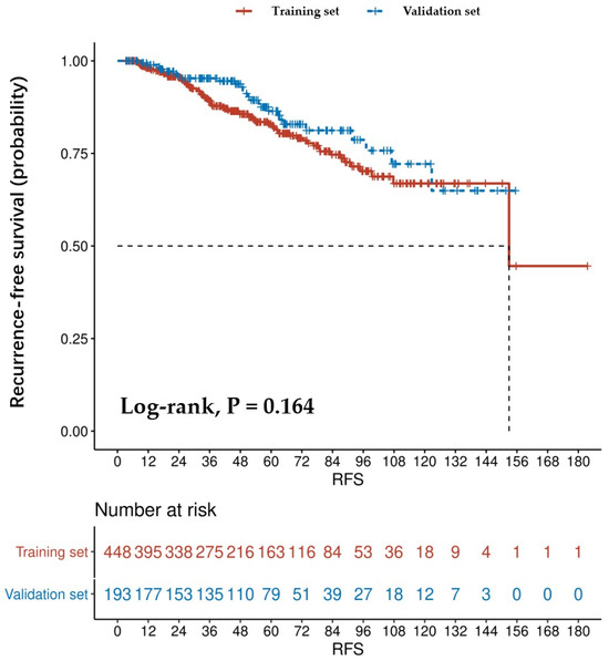 RFS curves of training (n = 448) and validation (n = 193) sets who underwent surgical resection.