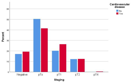 BCa tumor staging distribution according to presence of CVD.