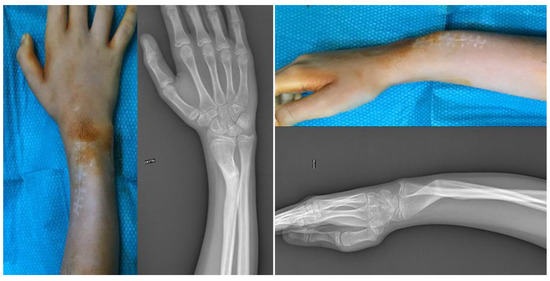 - Kataoka, T.; Oka, K.; Murase, T. Rotational Corrective Osteotomy for Malunited Distal Diaphyseal Radius Fractures in Children and Adolescents. J. Hand Surg. Am. 2018, 43, 286.e1–286.e8. [Google Scholar] [CrossRef]