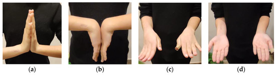 Postoperative pictures at 5-month follow-up documenting (a,b) wrist and (c,d) forearm range of motion.