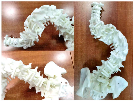 The DICOM data of the thin-slice CT scan (Siemens CT machine, SOMATOM Sensation 16, Siemens AG, Forchheim, Germany) of the patient was downloaded. Mimics 17 software (Materialise, Belgium) was applied for full spine 3D reconstruction, and the data was exported in the STL format to print or next procedure.