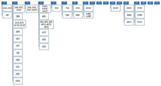 The CYP superfamily of hemoproteins, which shows a species-specific expression pattern, is responsible for the oxidation-based metabolism of both exogenous and endogenous substances [15]. Their location is mainly hepatic although they can be found in other parts of the organism such as the respiratory or intestinal tract [23]. The genes of this superfamily are classified based on the homology of their DNA sequences, thus being divided into families. To date, 57 genes and about the same number of pseudogenes have been described, which are grouped according to their similarity into 18 families and 44 subfamilies (Figure 1) [23].