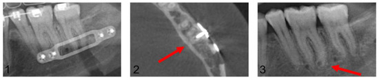 30]. We documented root injuries after clear radiological injury confirmation via CT imaging. The evaluation of the orthopantomograms in this study was performed only to obtain an overview of the number of screws and possible tooth damage due to close positional correlation. Previous studies also evaluated tooth root injuries based on 2D radiographic imaging [