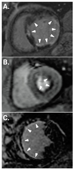 - Mavrogeni, S.I.; Kallifatidis, A.; Kourtidou, S.; Lama, N.; Christidi, A.; Detorakis, E.; Chatzantonis, G.; Vrachliotis, T.; Karamitsos, T.; Kouskouras, K.; et al. Cardiovascular magnetic resonance for the evaluation of patients with cardiovascular disease: An overview of current indications, limitations, and procedures. Hellenic J. Cardiol. 2023, 70, 53–64. [Google Scholar] [CrossRef]