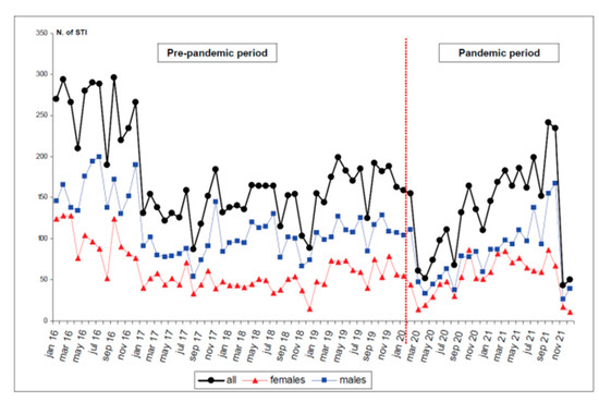 To our knowledge, no study has ever focused on evaluating the seasonal trends in terms of patients’ visits to STIs clinics, especially in regard to pre- and post-pandemic differences.