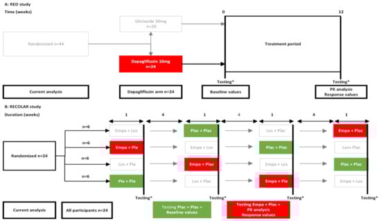 - Macha, S.; Mattheus, M.; Halabi, A.; Pinnetti, S.; Woerle, H.J.; Broedl, U.C. Pharmacokinetics, pharmacodynamics and safety of empagliflozin, a sodium glucose cotransporter 2 (SGLT2) inhibitor, in subjects with renal impairment. Diabetes Obes. Metab. 2014, 16, 215–222. [Google Scholar] [CrossRef]