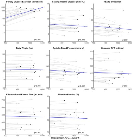 - Koomen, J.V.; Stevens, J.; Heerspink, H.J.L. Exposure-response relationships of dapagliflozin on cardiorenal risk markers and adverse events: A pooled analysis of 13 phase II/III trials. Br. J. Clin. Pharmacol. 2020, 86, 2192–2203. [Google Scholar] [CrossRef]