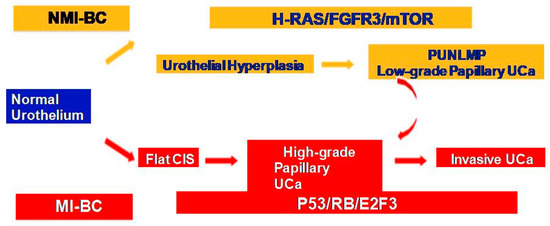Two divergent molecular pathways in non-muscle-invasive and muscle-invasive UC.