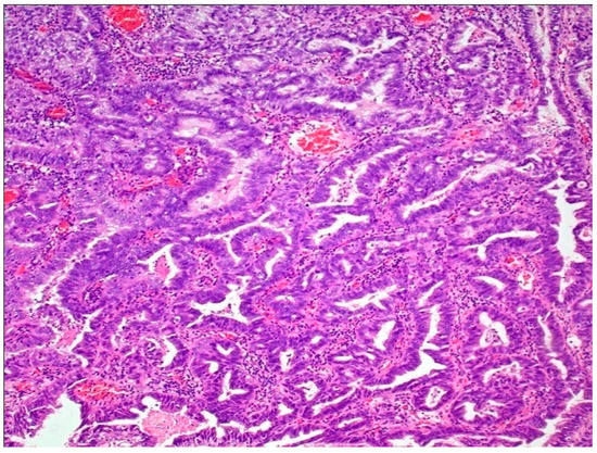 This group represents tumors characterized by a pure glandular morphology, and it also includes the entity urachal adenocarcinoma [41,104]. Morphologically, these tumors resemble colorectal adenocarcinomas. At a molecular level, these tumors are genetically distinct from UC and lack mutations in the TERT promoter region, as well as in chromatin-modifying genes involved in UC carcinogenesis. They are enriched in mutations in TP53, KRAS, and SMAD4,along with EGFR and ERBB2 amplifications, thus resembling a subset of colorectal adenocarcinomas [41,105,106,107] (Figure 5).