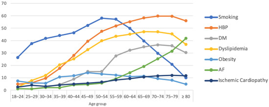 - Kissela, B.M.; Khoury, J.C.; Alwell, K.; Moomaw, C.J.; Woo, D.; Adeoye, O.; Flaherty, M.L.; Khatri, P.; Ferioli, S.; Rosa, F.D.L.R.L.; et al. Age at stroke: Temporal trends in stroke incidence in a large, biracial population. Neurology 2012, 79, 1781–1787. [Google Scholar] [CrossRef] [PubMed]
