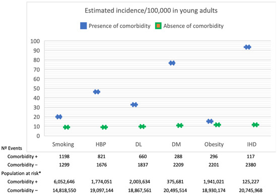 - Ramírez-Moreno, J.; Rebollo, B.; Macías-Sedas, P.; Valverde, N.; Parejo, A.; Redondo, F.F.; Montero, A.R.; Constantino, A.; Baquero, M.G.; Ceberino-Muñoz, D.; et al. Strength of association of classical vascular risk factors in young patients with ischaemic stroke: A case-control study. Neurologia, 2022; in press. [Google Scholar] [CrossRef] [PubMed]