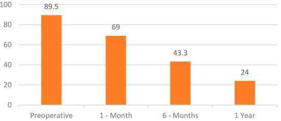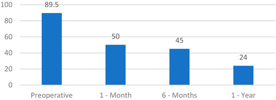 As highlighted by the data, for a small percentage of the patients (1.75%, corresponding to 36 patients), the survey still showed a score of 60, indicative of the patient’s daily ill-being. In this case, we proceeded with a re-evaluation of the factors that could have influenced the surgical outcome.