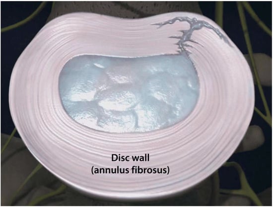 - Stefanakis, M.; Al-Abbasi, M.; Harding, I.; Pollintine, P.; Dolan, P.; Tarlton, J.; Adams, M.A. Annulus Fissures Are Mechanically and Chemically Conducive to the Ingrowth of Nerves and Blood Vessels. Spine 2012, 37, 1883–1891. [Google Scholar] [CrossRef] [PubMed]
