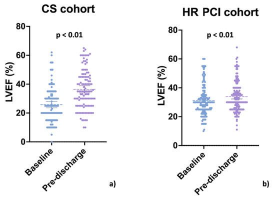 - In the CS group, half of the patients experienced an improvement in LVEF of at least 10%. Conversely, an increase of only 3% was achieved by about 40% of patients in the HR PCI group.