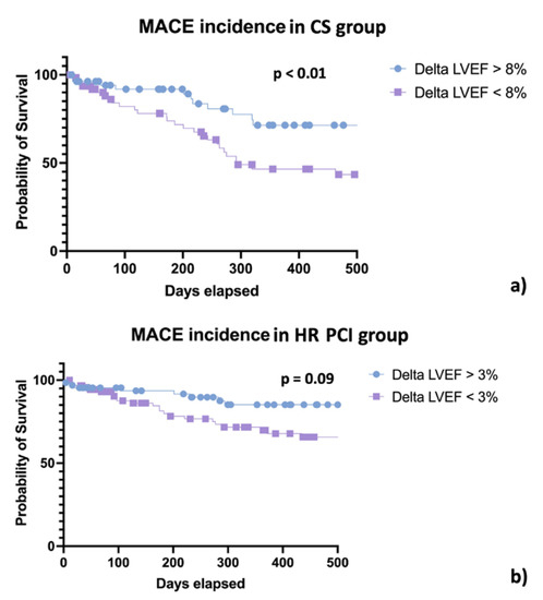 - In patients presenting with CS, in-hospital LVEF recovery was the main predictor of lower all-cause death, cardiac death, HF hospitalisation, and MACE at clinical follow-up. Instead, complete revascularisation, but no improvement in EF, was the main predictor of adverse events in patients undergoing HR PCI.