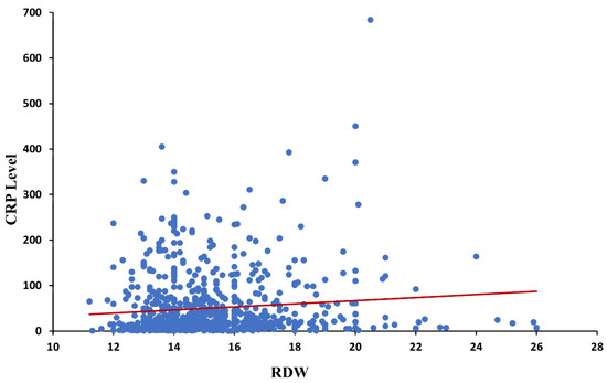 In Pearson’s correlation analysis of CBC parameters with CRP levels (Table 3), CRP levels showed a strong positive correlation with RDW and CRP (Figure 3).