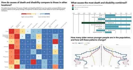 Illustration of disease burden expressed in death and disability (DALYs) based on sociodemographic indicators across several locations in Southeast Asia and China relative to the group average, showing an aging population and a change in the order of the top 10 causes of death and disability (DALYs) in 2019 and percent change from 2009 to 2019 for all ages combined. In 2019, musculoskeletal conditions and low back pain were of much higher relevance to public healthcare systems than in 2009. Source: Institute for Health Metrics Evaluation. Used with permission. All rights reserved.