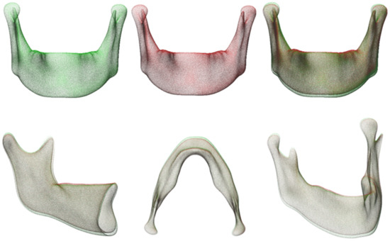 - Zachow, S.; Lamecker, H.; Elsholtz, B.; Stiller, M. Reconstruction of mandibular dysplasia using a statistical 3D shape model. Int. Congr. Ser. 2005, 1281, 1238–1243. [Google Scholar] [CrossRef]