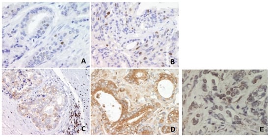 - Brewster, S.F.; Oxley, J.D.; Trivella, M.; Abbott, C.D.; Gillatt, D.A. Preoperative p53, bcl-2, CD44 and E-cadherin immunohistochemistry as predictors of biochemical relapse after radical prostatectomy. J. Urol. 1999, 161, 1238–1243. [Google Scholar] [CrossRef]