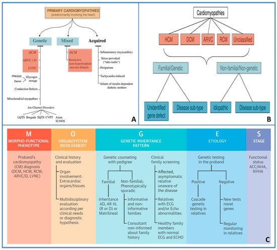 - Arbustini, E.; Narula, N.; Tavazzi, L.; Serio, A.; Grasso, M.; Favalli, V.; Bellazzi, R.; Tajik, J.A.; Bonow, R.D.; Fuster, V.; et al. The MOGE(S) Classification of Cardiomyopathy for Clinicians. J. Am. Coll. Cardiol. 2014, 64, 304–318. [Google Scholar] [CrossRef]