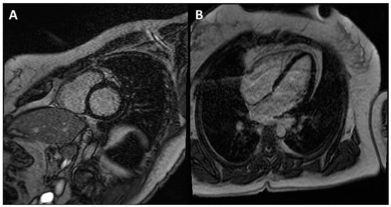 Leading to poor prognosis, an overlapping DCM/ACM phenotype can be recognized in the presence of a subepicardial, ring-like scar pattern, associated with a more focal LV impairment and correlated with specific mutations, such as DSP and FLNC genotypes []. Moreover, higher native-T1 myocardium values constitute a notable predictor of all-cause mortality, arrhythmic outcomes, and HF risk in patients with DCM []. Finally, feature-tracking (FT) strain analysis could be a promising technique for improving risk stratification of DCM patients undergoing CMR; in fact, independently of LVEF, LGE, and clinical parameters, CMR-FT findings are associated with a better cardiovascular outcome in the presence of preserved FT-GLS, even in patients with reduced LVEF < 35% and/or with evidence of LGE [].