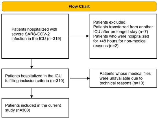 All data was retrieved from the medical files kept in the electronic system of the hospital (medico//s of Siemens Medical Solutions). From a total of 319 patients hospitalized during the aforementioned timeframe who were screened for inclusion, 300 were finally included in the study (
