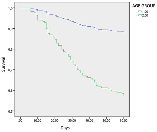Nevertheless, in the multivariate Cox regression analysis, neither age as a constant variate nor the age group managed to express statistical significance concerning 60-days mortality in the ICU (p-value = 0.320).