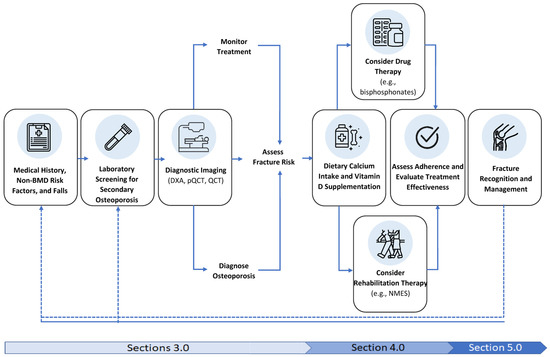 Flow diagram of the process of identifying, treating, and managing sublesional osteoporosis and fractures in SCI (Figure adapted with permission from Paralyzed Veterans of America; Consortium for Spinal Cord Medicine Clinical Practice Guidelines [10]).