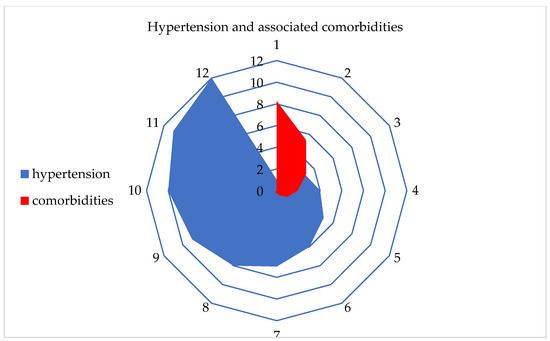 In the world population, as well as in Serbia, cardiovascular diseases have been the most prevalent group of diseases for many years, with hypertension being the most common. Hypertension, or high blood pressure, is a condition characterized by high pressure in the arteries. Primary (essential) hypertension is the most common and often appears without a recognizable cause, while secondary hypertension occurs due to other health conditions. Along with hypertension, other conditions or diseases often occur, known as comorbidities. Cardiovascular disease, kidney disease, diabetes, stroke, depression and anxiety, overweight, respiratory diseases, as well as vision problems are some of the most common comorbidities associated with hypertension. Controlling blood pressure and monitoring other health problems are crucial in reducing the risk of serious complications associated with these comorbidities [25,26].