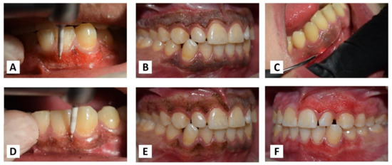 The tissue removal for both laser and bur was completed by maintaining a distance of nearly 1 mm from the gingival margin to avoid the risk of gingival recession as much as possible (Figure 2E,F).