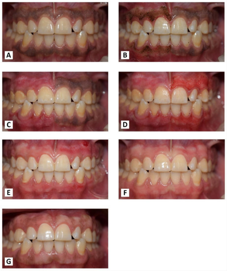 - Sharath, K.S.; Shah, R.; Thomas, B.; Madani, S.M.; Shetty, S. Gingival depigmentation: Case series for four different techniques. J. Health Allied Sci. NU 2013, 3, 132–136. [Google Scholar] [CrossRef]