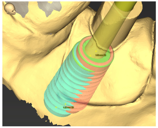 Backward planning, considering the later prosthetic position by using a referencing template during 3D imaging or subsequently by using a digital wax-up in the planning software, can have further positive effects on the quality of implantological dental rehabilitation [16,17,18,19]. In surgery, as in implantology, experience and the development of personal surgical skills are of particular importance. Learning curves are indisputable [7,20,21,22,23]. A legitimate goal here is certainly to minimize intraoperative risks and aim for maximum success through thorough surgical preparation and planning [24]. This seems to be another advantage of 3D implant planning and guided implantology. During the training of oral and maxillofacial surgeons, training assistants can discuss the implant planning with their teachers at a distance from the patient and without time stress. The fact that a high level of intraoperative precision can be achieved through 3D planning, even by doctors in training, has already been demonstrated in other areas of maxillofacial surgery, such as orthognathic surgery [25,26]. Therefore, the use of computer-assisted surgical planning seems to be a very useful element, especially during student training [27,28,29]. Particularly, in implantology, surgical and prosthetic elements, but also the special features of dental technology, can be taught and learned in this way.