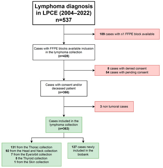 Flow chart of the cohort of cases included in the lymphoma collection of the biobank.