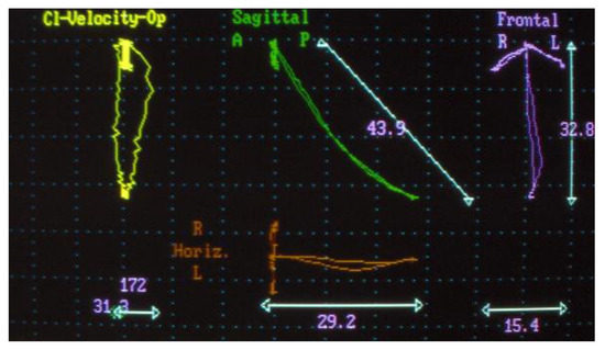 - Electrognathographic parameters. Movement trajectory for opening, closing, and masticatory cycle with elastic hard bolus (Figure 4 and Figure 5). All patients underwent mandibular functional evaluation using the electrognathograph (BioEMG, BioResearch, Inc., Milwaukee, WI, USA) according to our protocol, which included: