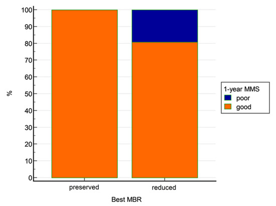 Outcome at 1-year follow-up depending on best MBR.