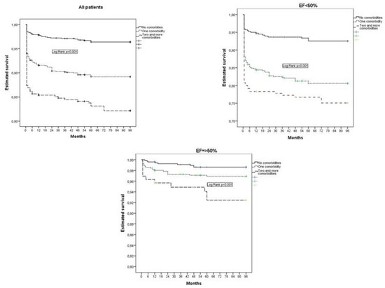 Left-ventricular ejection fraction (EF) is considered one of the most important predictors of prognosis after STEMI. The percentage of patients with reduced left-ventricular systolic function (i.e., reduced EF) is smaller in the pPCI era than in the thrombolytic era because establishing normal blood flow through the infarcted artery leads to a reduction in the myocardial necrotic zone [12]. It can be said that in the era of primary PCI, there is a higher percentage of patients with preserved systolic function than patients with reduced systolic function of the left ventricle. Patients with preserved EF generally have an excellent short- and long-term prognosis [1]. Predictors of long-term prognosis, as well as the influence of non-cardiac comorbidities, may be different in patients with reduced and preserved left-ventricular systolic function. To the best of our knowledge, the influence of non-cardiac comorbidities on the long-term prognosis of patients in relation to the EF value after STEMI has not been analyzed as of yet.