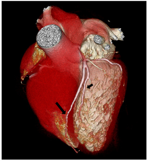 - Spindola-Franco, H.; Grose, R.; Solomon, N. Dual left anterior descending coronary artery: Angiographic description of important variants and surgical implications. Am. Heart J. 1983, 105, 445–455. [Google Scholar] [CrossRef]