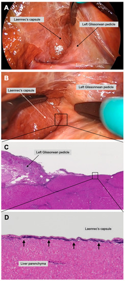 3.1.2. The Laparoscopic Extrahepatic Glissonean Approach and Pathologic Examination of the Laennec’s Capsule in a Live Body