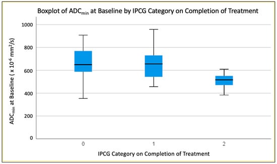 Boxplot demonstrating difference in Baseline ADCmin between groups.