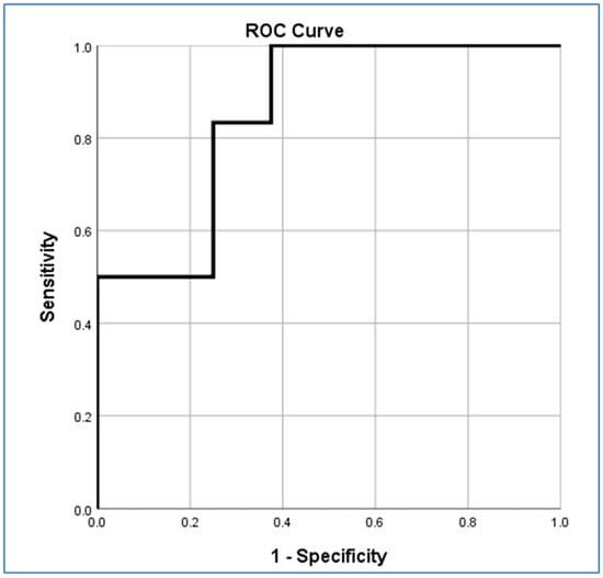 ADCmean at baseline was the strongest predictor of IPCG response at the end of four cycles’ treatment (p < 0.017, AUC 0.854; Figure 6) amongst the parameters tested but, interestingly, this did not predict response after two cycles of treatment (p < 0.414).
